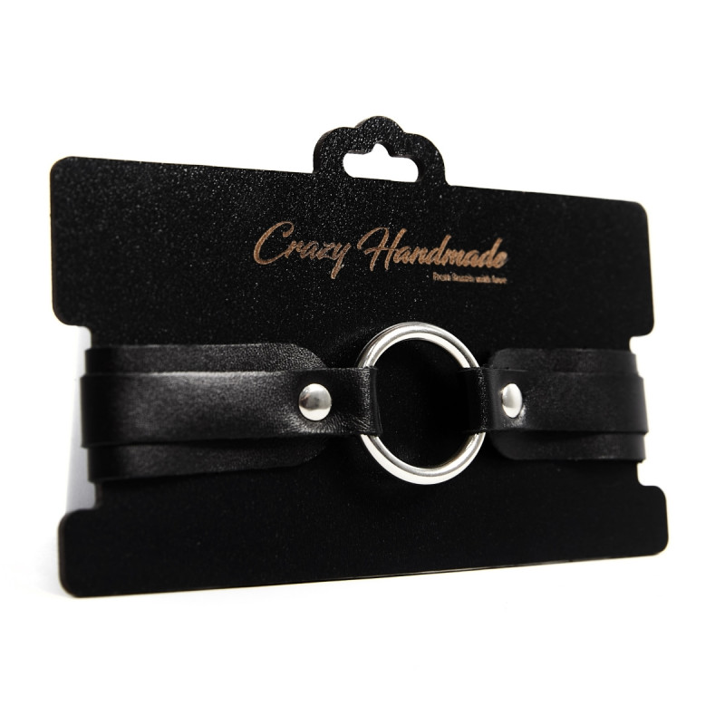 Изготовлен из натуральной кожи с велюровой подкладой. При изготовлении использована никелированная фурнитура. Ширина ошейника 50 мм, длина цепочки (поводка) с карабином 50 см. Размер универсальный. Один из основных атрибутов BDSM.