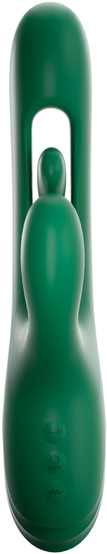 В вагинальной части кролика расположен небольшой язычок, который мягко и точно стимулирует точку G манящими движениями и дополнительной вибрацией на 6 разных режимах от нежных до ритмичных движений.